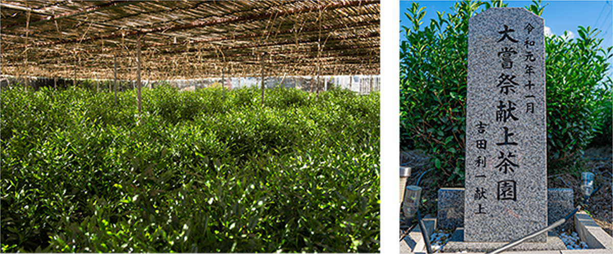 砂壌土が混じる土壌は水はけと保水性のバランスがよく、根が健やかに張る環境を育みます。その豊かな大地に、十六代にわたり受け継がれてきた有機質肥料を用いた栽培の知恵と手間が息づいています。茶の栽培技術、茶園の景観、室町時代からの伝統の継承を評価され、吉田園の本ず茶園は日本遺産に認定されました。