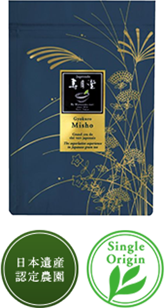 さみどり100%のシングルオリジン茶。よしずやわらなどの自然素材で覆う伝統の栽培法は、90%を超える遮光率によって苦味成分であるカテキンの生成を抑え、濃厚な旨みと甘みを引き出します。
