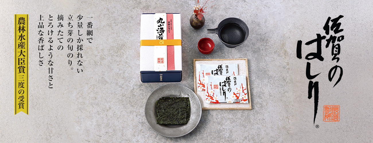 有明海は干潮時と満潮時の水位の差が大きいため、海苔網が海上に露出する時間が長く、天日干しの状態でじっくりと光合成が行われ、とろりと甘みのあるおいしい海苔が生まれます。