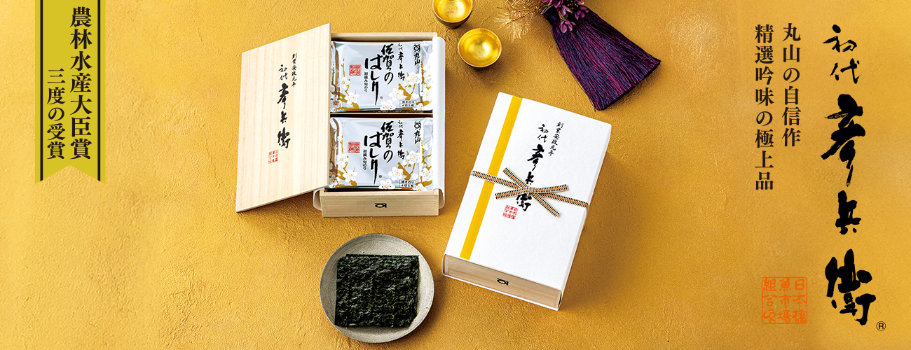 丸山海苔店の前身である乾海苔問屋「川口屋」の創業者彦兵衛は、おいしさの追求の為に海苔専門のブリキ缶を発明するなど新しい試みを積極的に取り入れるという挑戦者でした。本品は、その彦兵衛の精神を受け継いで生まれた極上品です。