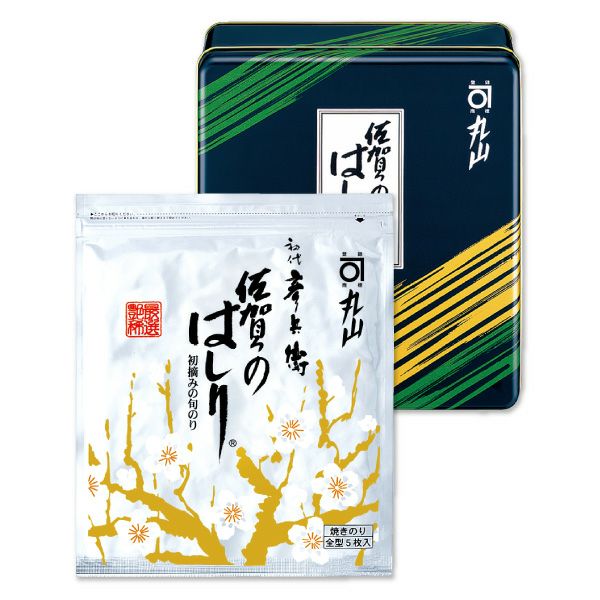 鮮度を保つアルミチャック袋に入った板のりサイズの海苔を缶に詰めました。