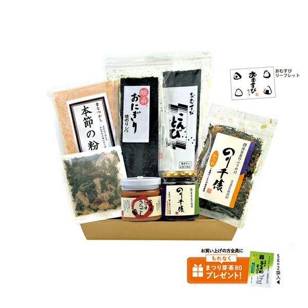 原材料名 【こんとびゴールド(三切)】干のり(国産) 【腕前おにぎり1/3】干のり(国産) 【のり千俵築地のかけごはん】かつおのふし(国内製造)、干のり(国産)、青のり 【しそ漬けうらごし梅】梅(紀州)、漬け原材料(食塩、しそ液) 【のり千俵海苔屋の佃煮】海苔(国産)、醤油、砂糖、ピーマン、麹、水飴、煮干し、食塩、アミエキス、煮干粉、唐辛子、昆布、椎茸、酵母エキス/乳酸(一部に小麦・大豆を含む) 【のり千俵海苔屋のふりかけかつお】白ごま(輸入)、かつお削り節、乳糖、砂糖、海苔、食塩、しょうゆ、かつおパウダー、酵母エキス、みりん、かつおエキスパウダー、かつおエキス、昆布粉末、魚醤、粉末しょうゆ(一部に乳成分・小麦・大豆・ごまを含む) 【本節の粉】かつお枯れぶし(国内製造)