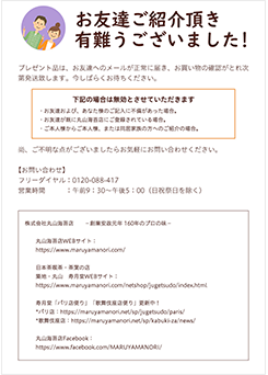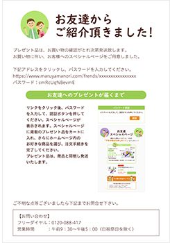 あなた様にお礼のメールをお届けします。お友達にメールを配信完了後、プレゼント品をお届けします。