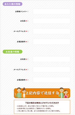 お友達ご紹介ページ入力フォームに必要な情報を入力してください。