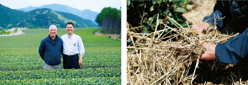 山あいにあるため、農薬を使う他の茶畑の影響を受けることもありません。昼夜で寒暖の差が大きく、水はけの良い土壌のため、茶葉がじっくりとうまみを蓄えながら育ちます。また、立ちこめる霧も良質なお茶の栽培には欠かせません。美味しく、しかも安心していただけるお茶が、この天空の畑で生まれます。