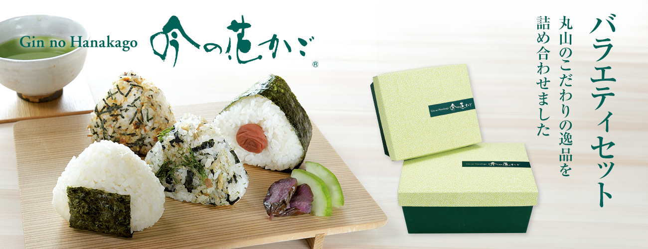 おむすびセットは、専用の簡易箱になります。吟の花かご箱入りの商品もございます。